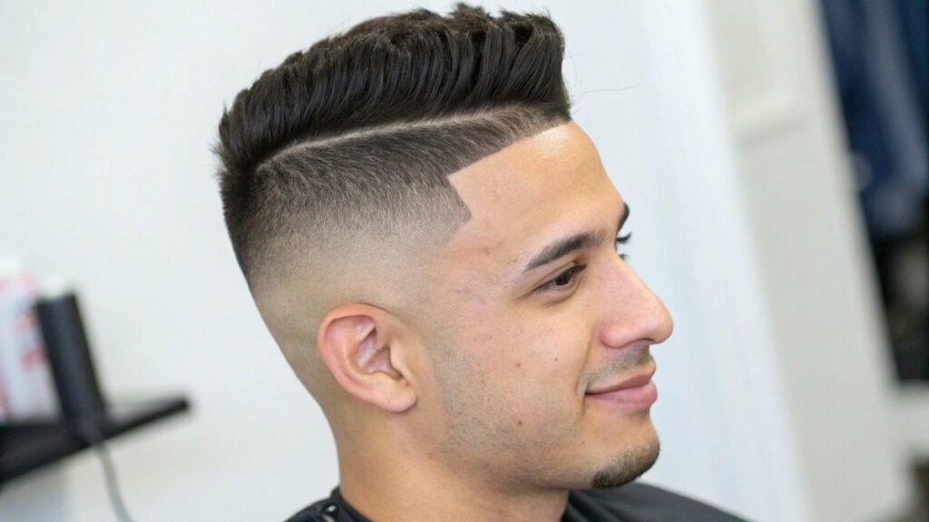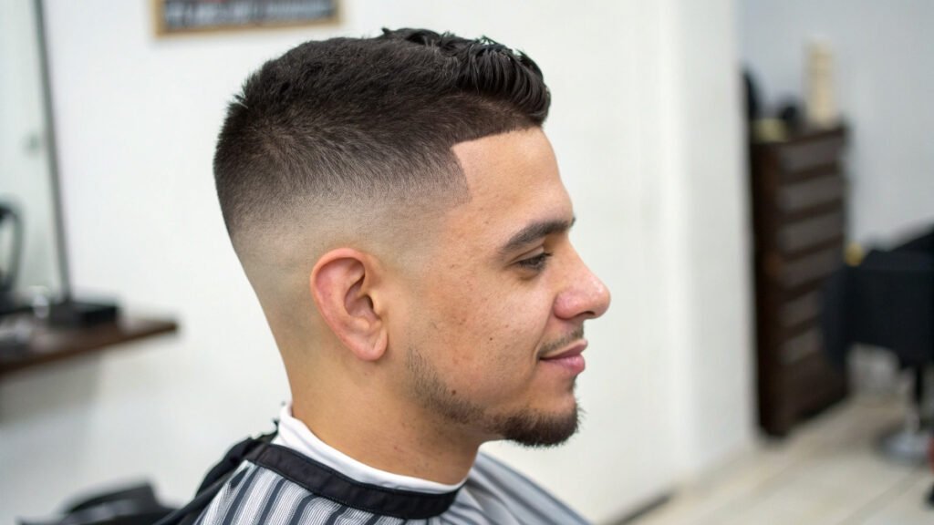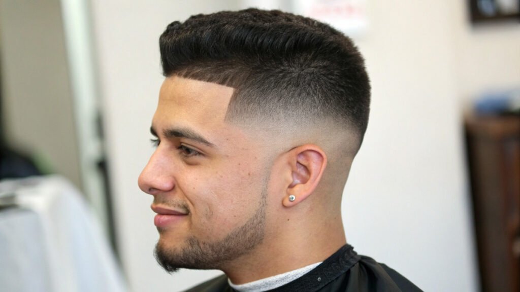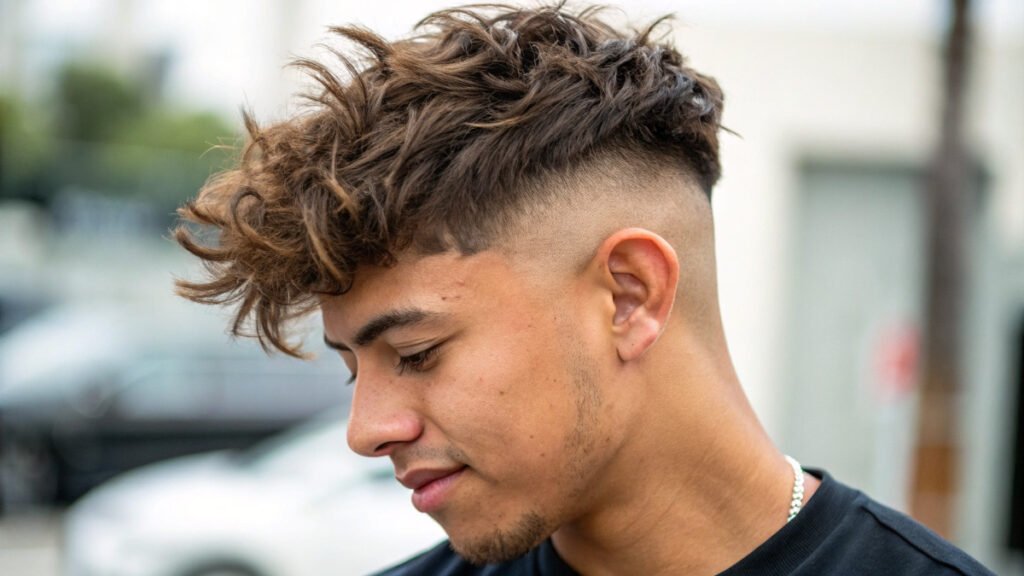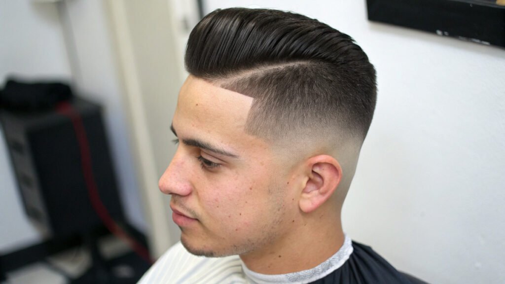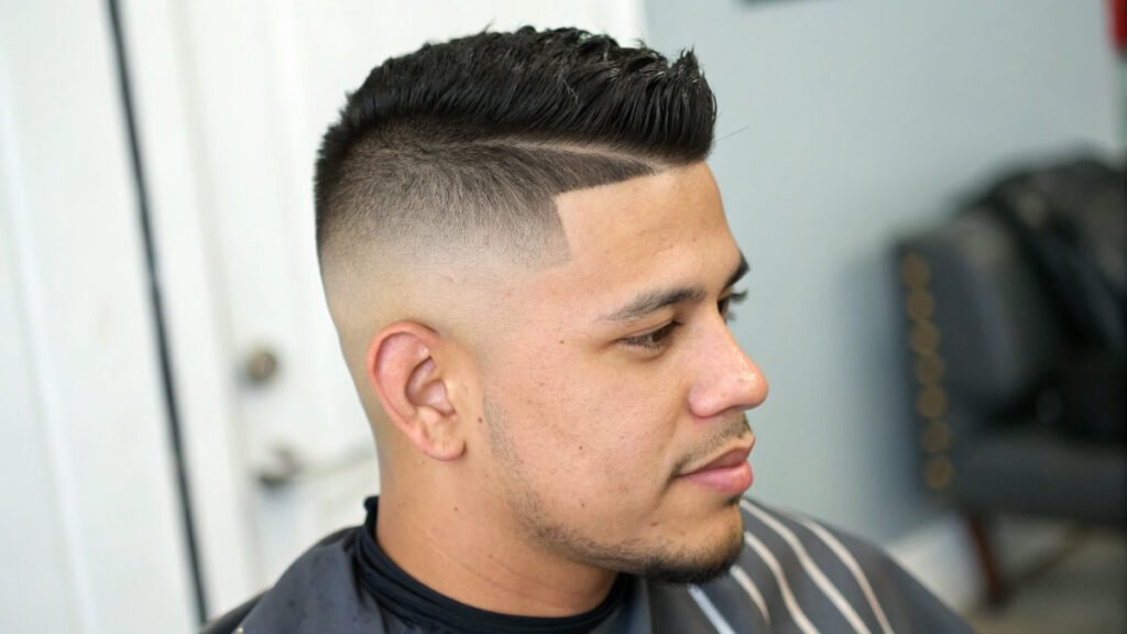Mexican fade styles often feature sharp precision with styled top sections. This approach may include hard parts or design elements. Clean execution and attention to detail characterize this cultural style.
