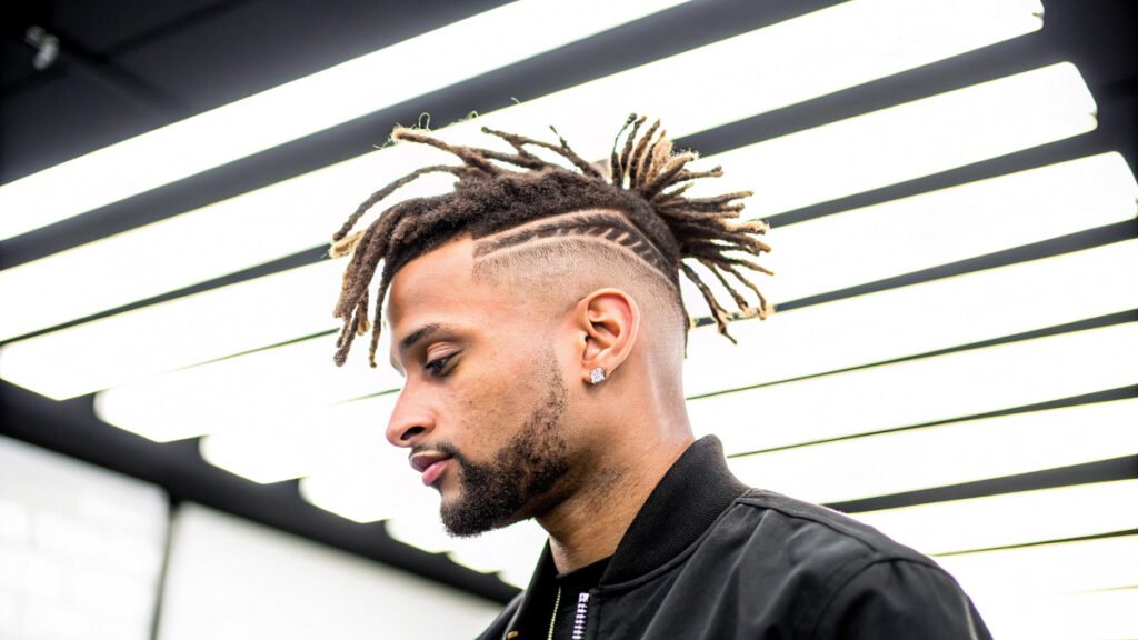 Dreadlock fades maintain natural texture while cleaning side sections dramatically. This approach celebrates cultural authenticity with contemporary elements. Clean contrast makes dread textures more prominent.