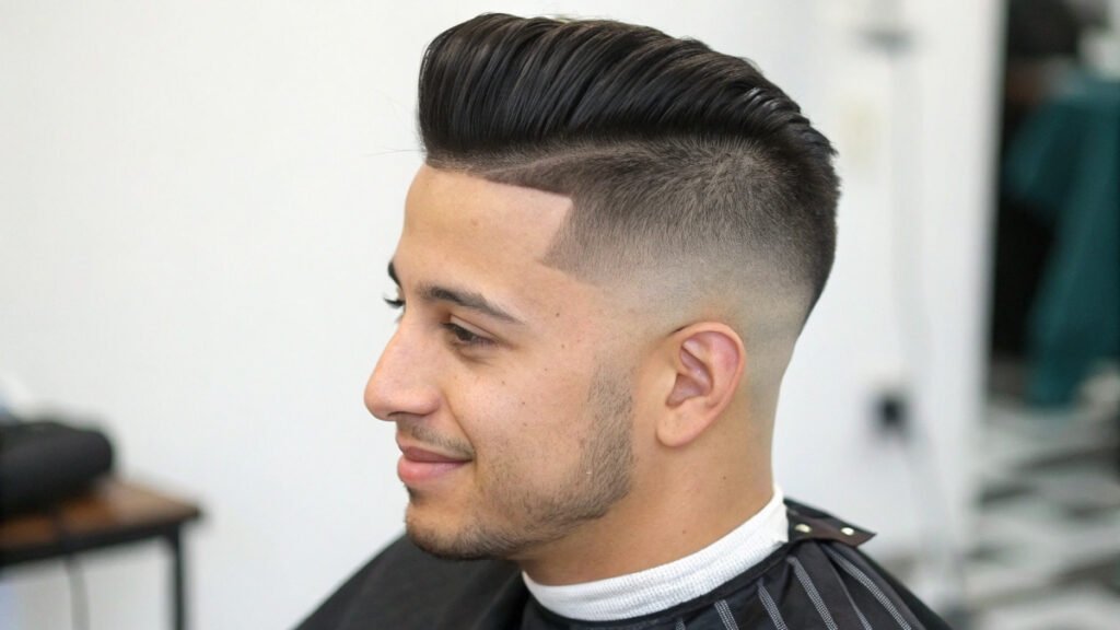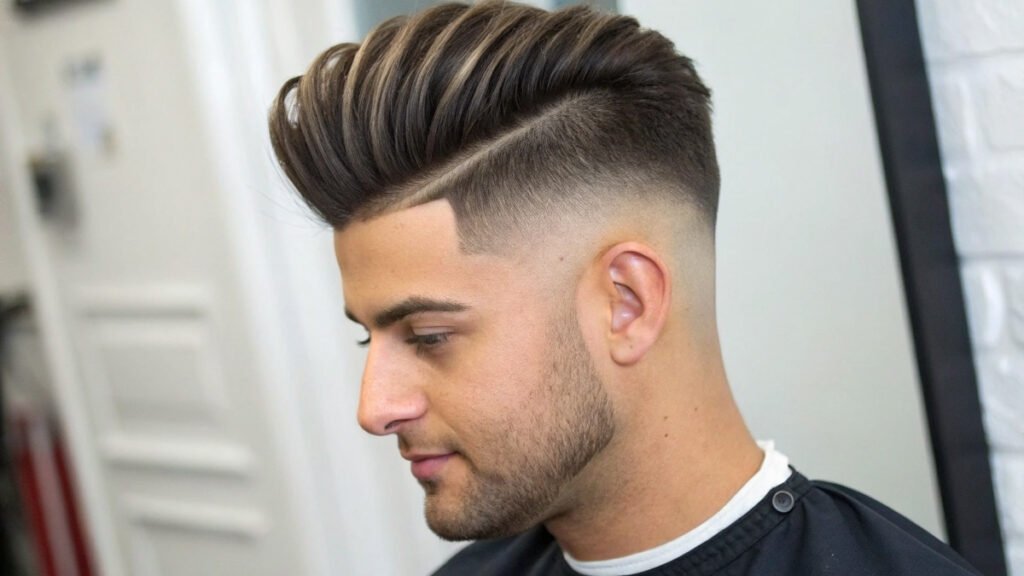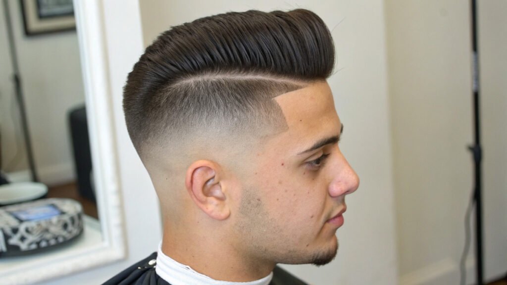 Bold clients choose high fades for their dramatic effect. This style leaves significant length on top for creativity. The contrast between top and sides appears more pronounced.