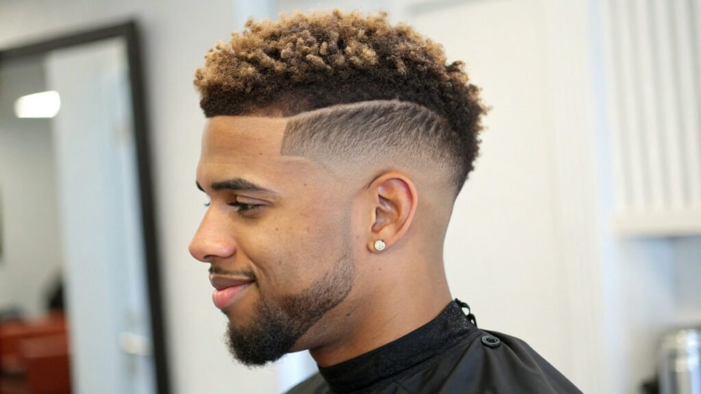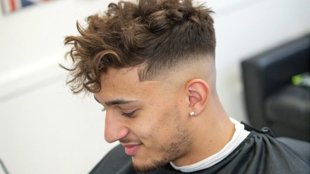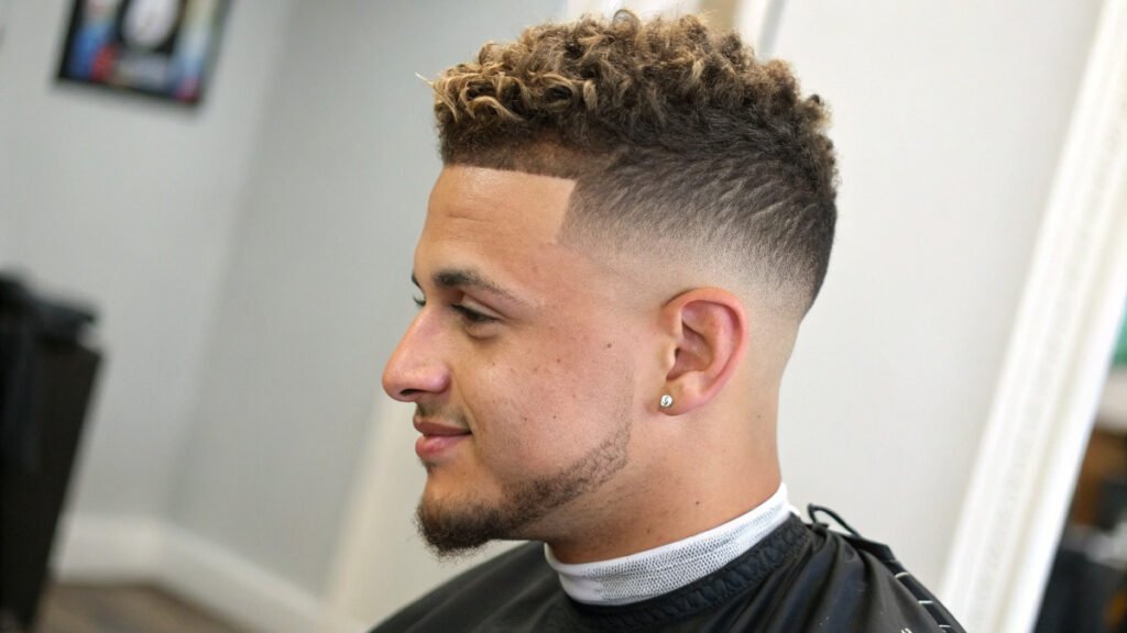 Textured fades enhance natural hair patterns with clean side contrast. This approach celebrates existing texture while adding contemporary elements. Natural patterns and clean sides create appealing combinations.